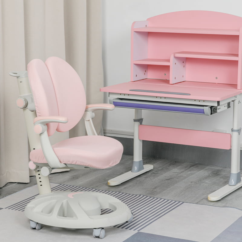 শিশুদের উচ্চতা সামঞ্জস্যযোগ্য স্টাডি ডেস্ক এবং চেয়ার: RXC0 পিঙ্ক টিল্টিং ডেস্কটপ সেট শিশুদের স্বাস্থ্যকর বসার এবং বৃদ্ধির জন্য